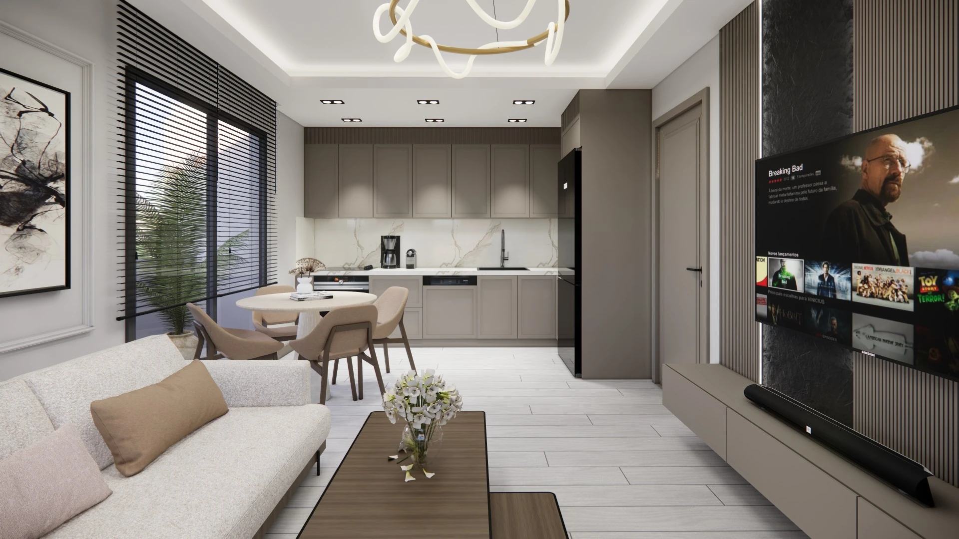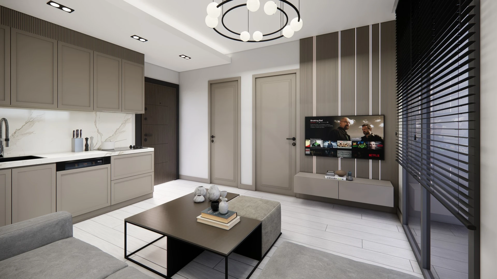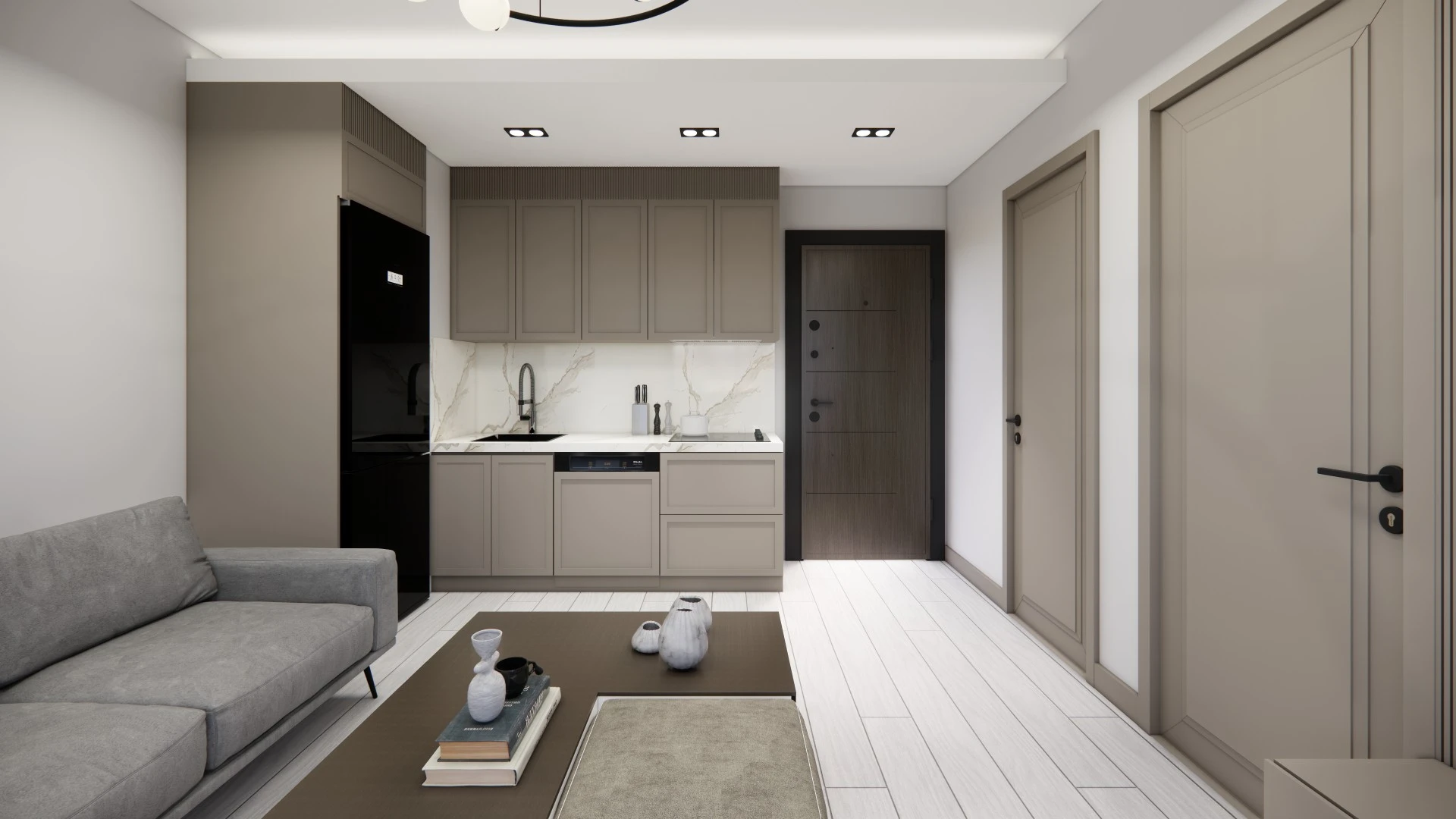 38 m² büyüklüğündeki 1+1 daireler; modern ve kompakt tasarımı, açık mutfak planı ve yatırım ile kiralama için ideal ölçüleriyle öne çıkmaktadır.